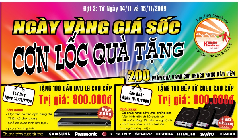 Ngoài ra, trong chương trình giờ vàng, khi mua LCD full HD của LG, khách hàng được tặng máy đo huyết trị giá 700.000 đồng, đầu Blue - ray LG trị giá 6.000.000 đồng, bộ dàn âm thanh LG trị giá 4.990.000 đồng. 20 chiếc máy ảnh KTS Kodak trong giờ vàng giá chỉ có 1.390.000 đồng (10h - 11h ngày 14,15/11).