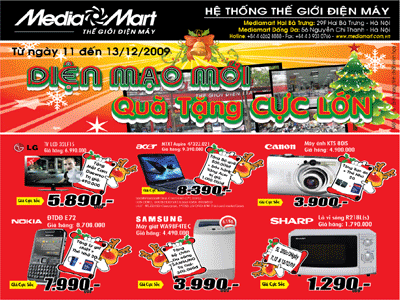 • Thứ sáu ( Ngày 11/12/2009), Mediamart giành tặng cho 100 khách hàng đầu tiên cơ hội sở hữu TVLCD 20” trị giá 3.250.000 đồng.
