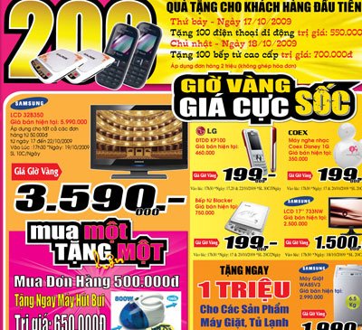 Thứ 7 (17/10) và thứ ba (20/10) đồng giá 199.000 đồng đối với các sản phẩm máy nghe nhạc Coex, điện thoại di động KP100 và bếp từ Blacker BIC 250;