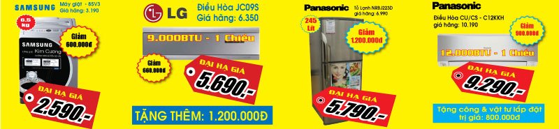 Tất cả sản phẩm điện tử và đồ gia dụng. Chương trình lần này đặc biêt tập trung cho các thiết bị TV và âm thanh. Ngoài ra còn hàng nghìn các sản phẩm được giảm giá và tặng quà nổi bật như :