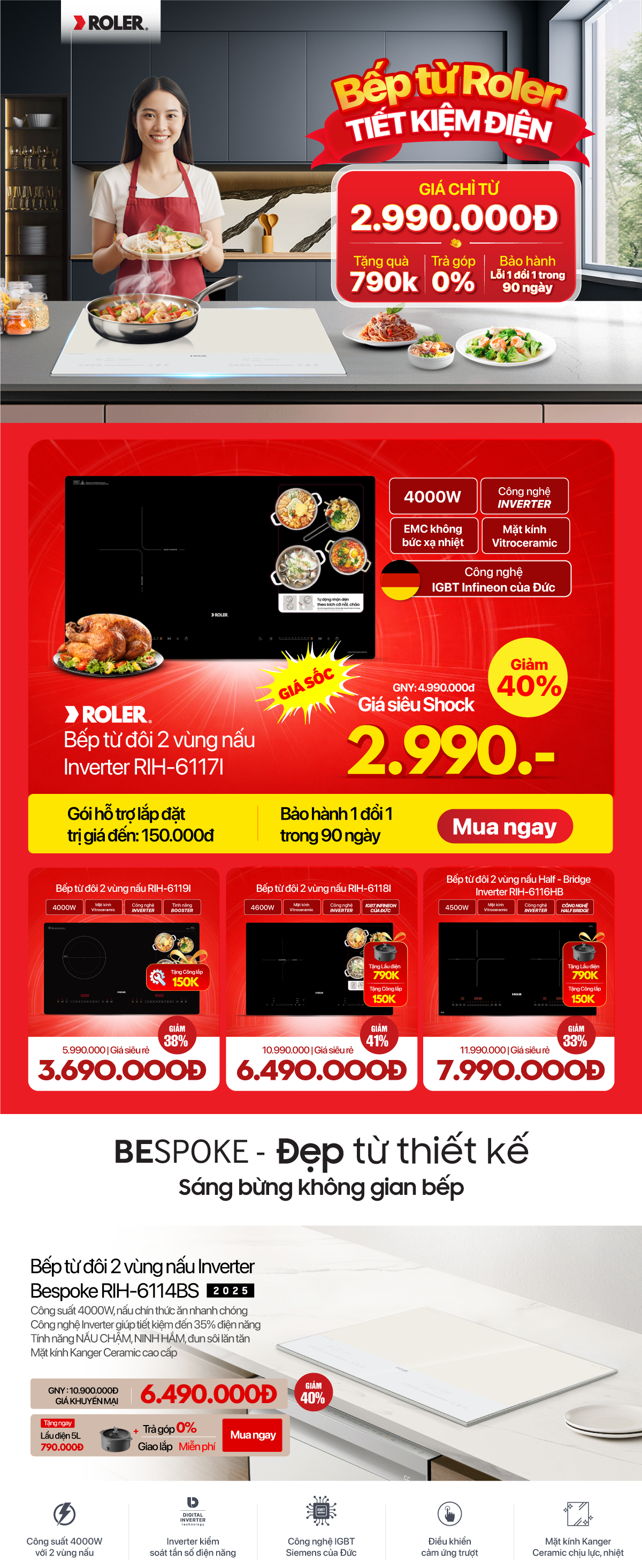 Bếp từ đôi 2 vùng nấu Inverter Roler RIH-6117I