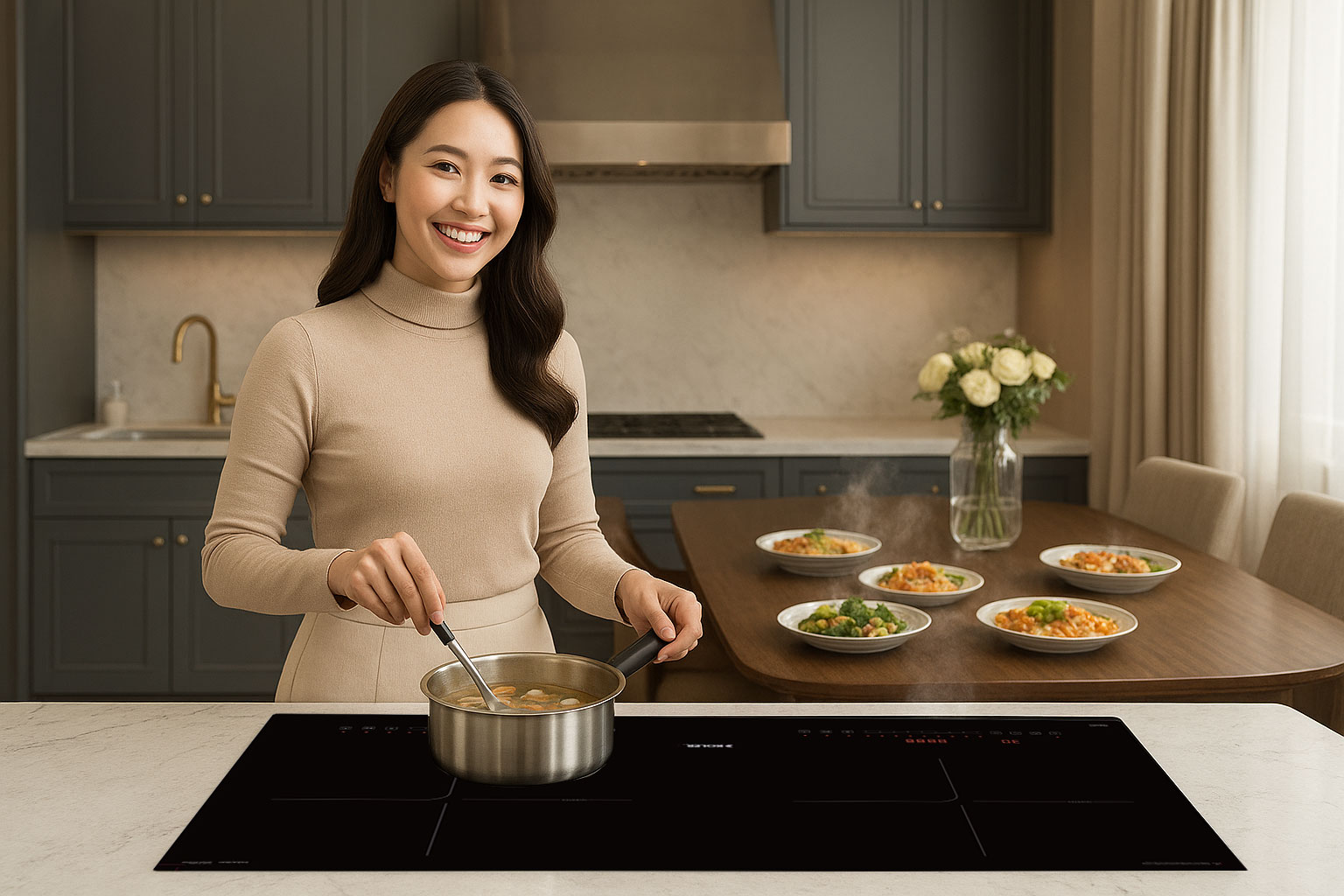 Với 2 vùng nấu thông minh, bạn có thể nấu nhiều món cùng lúc mà không chiếm diện tích. Bố cục khoa học giúp căn bếp gọn gàng, hiện đại và sang trọng.