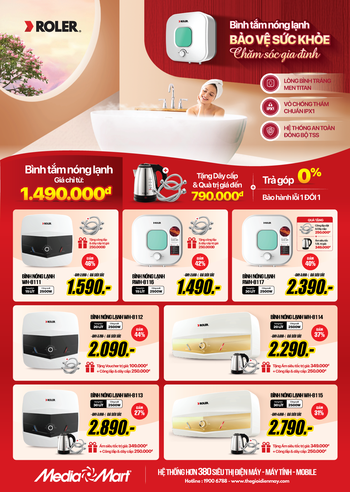 Bình nóng lạnh gián tiếp 30L Roler WH-8115