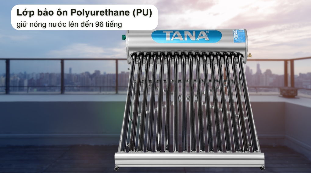 Máy nước nóng năng lượng mặt trời được trang bị lớp cách nhiệt Polyurethane dày, bao bọc bên ngoài bình