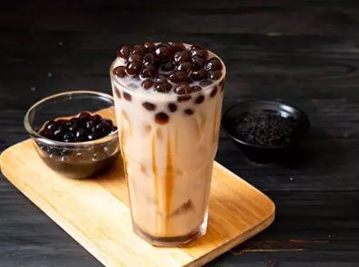 + Lấy ly thủy tinh và đổ hết trà sữa trà đen trong shaker pha chế ra và cho thêm topping nếu các bạn muốn. Rồi các bạn thưởng thức ly trà sữa bằng sữa tươi nhé.