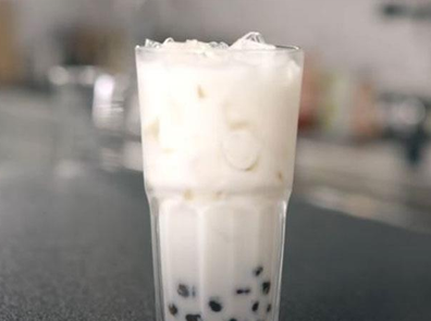 Lấy 1 ly thủy tinh khác lần lượt cho: 30 ml nước cốt trà đen đã làm ở bước 1 + 30 ml nước đường phèn + 100 ml sữa tươi + 30 gr trân châu đen rồi dùng thìa khuấy đều.
