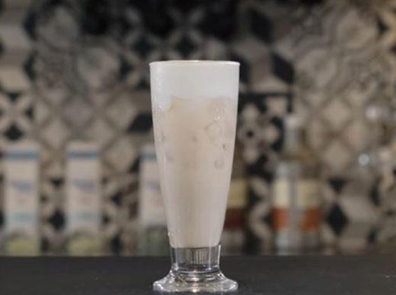 Trong ly thủy tinh chứa trà sữa bạn tiếp tục cho vào lượng đá viên tùy thích lấy trong tủ lạnh ra cho vào và tiếp tục đổ lớp kem muối cuối cùng lên trên mặt ly trà sữa. Thêm một chút nước sốt cà phê rưới lên trên để tạo hình trang trí nhé.