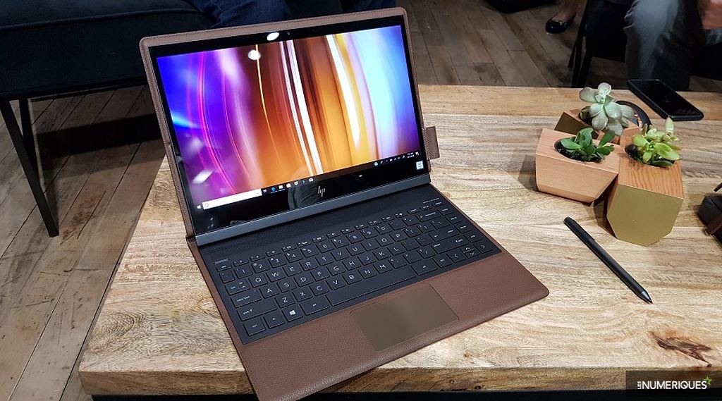 Spectre Folio là nỗ lực mới nhất của HP trong việc nâng tầm các mẫu thiết kế notebook. Đúng như tên gọi của nó, Spectre Folio thực sự trông giống như một tác phẩm bằng da đắt tiền, hoàn chỉnh với các đường khâu tinh tế và các đường nối vừa khít khi đóng lại. Khi mở ra, bạn có một thiết bị với màn hình 13,3 inch và một bàn phím kích thước đầy đủ trên một mảnh kim loại mỏng với các phần cứng của máy nằm bên dưới.