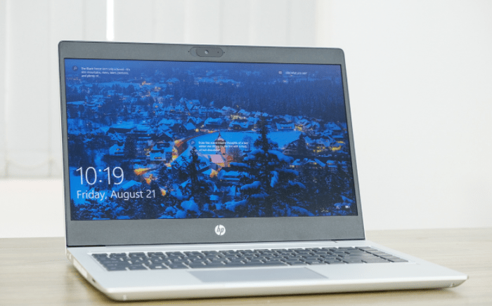 Viền bao quanh màn hình của ProBook 445 G7 khá dày, đặc biệt là hai viền trên dưới, và đây cũng là phần linh kiện duy nhất trên máy được làm bằng nhựa. Đáng chú ý, ở cạnh trên, HP cũng đã tích hợp một thanh trượt để che chắn webcam khi không có nhu cầu sử dụng – một tính năng cần thiết trong kỷ nguyên mà quyền riêng tư đang được đặt lên hàng đầu, đặc biệt quan trọng với những laptop dành cho doanh nghiệp như ProBook 445 G7.