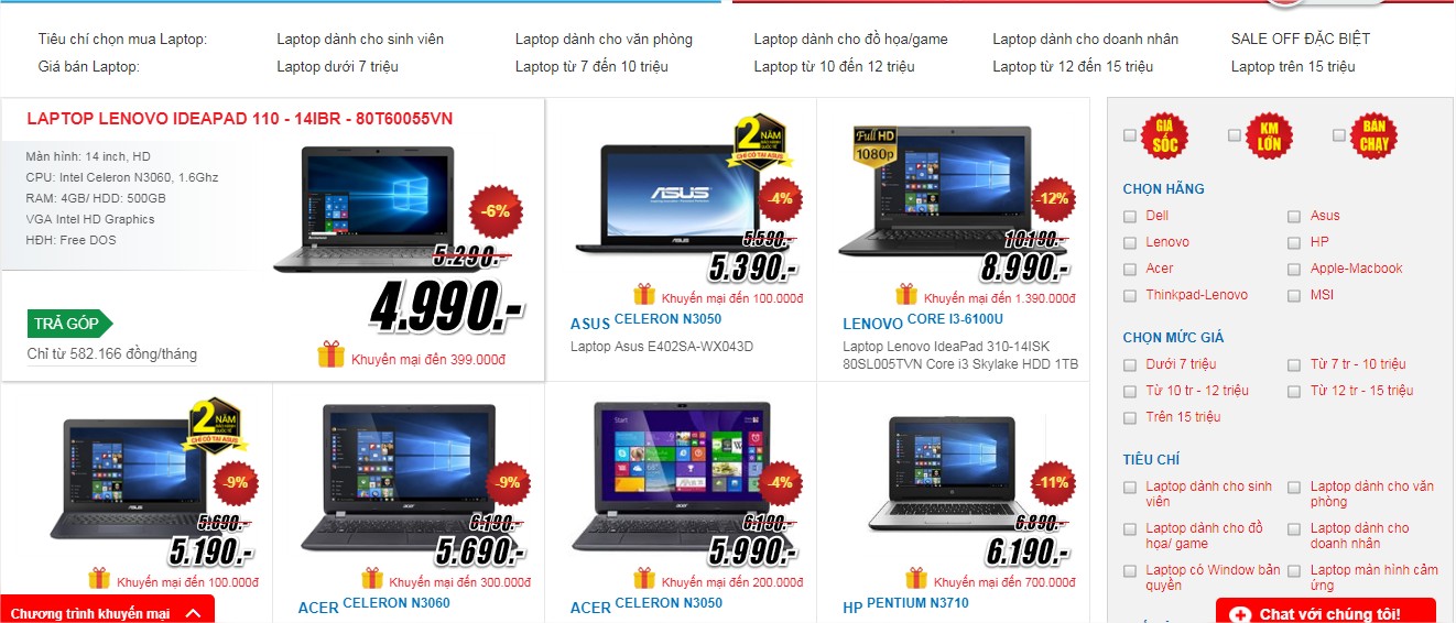 - Dưới 15 triệu đồng: Bạn sẽ phải "cân não" nhiều hơn. Mức giá dành cho những chiếc laptop phổ thông với chip xử lý dòng thấp, bộ nhớ lưu trữ ít, dung lượng RAM cũng không mấy dư dả. Tuy nhiên nếu chỉ làm việc với file tài liệu, duyệt web, xem phim hay chơi game nhẹ nhàng thì chúng hoàn toàn đáp ứng tốt nhu cầu của bạn.