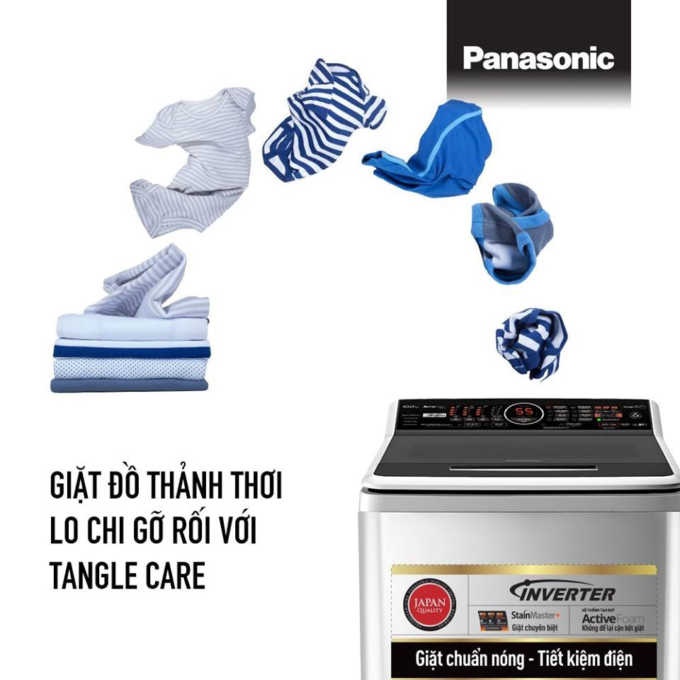 Bên cạnh đó, xoắn rối quần áo luôn là nỗi lo của máy giặt lồng đứng. Chức năng gỡ rối tự động Tangle Care trên máy giặt TD Inverter của Panasonic còn giúp gỡ rối sau khi giặt, quần áo không còn xoắn lại mà được gỡ tơi như vừa đươc giũ bằng tay, nhờ đó việc phơi quần áo sẽ trở nên nhanh chóng và dễ dàng hơn.