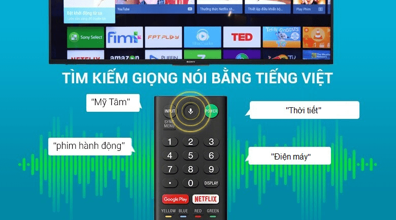 Thay vì phải bấm từng nút trên Remote, trượt nút tới các app hay tìm kiếm về tên bài hát thì chúng ta đã có thể bấm vào nút voice trên remote và ra lệnh để TV mở cho chúng ta.