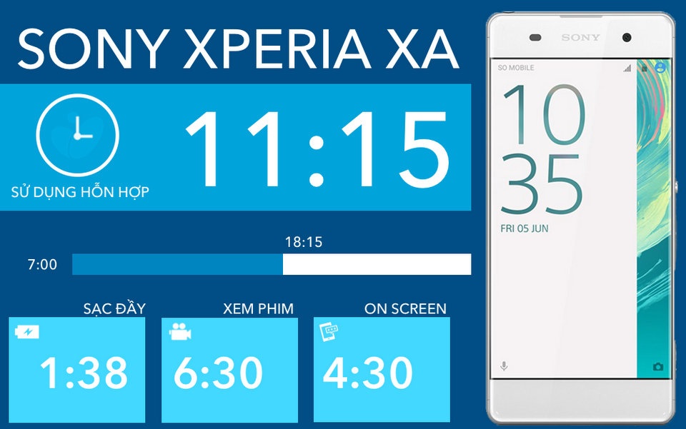 Được giới thiệu hồi đầu năm nay, Sony Xperia XA là chiếc điện thoại tầm trung với thiết kế lạ và ấn tượng. Theo công bố của nhà sản xuất, thiết bị có thể hoạt động được trong hai ngày chỉ với một lần sạc. Ngoài ra, sản phẩm cũng có công nghệ sạc nhanh Pump Express+ 2.0 của MediaTek. Trong bài viết này, mình sẽ cung cấp cho các bạn thông tin chi tiết về thời gian sử dụng pin của Xperia XA, mời các bạn theo dõi.