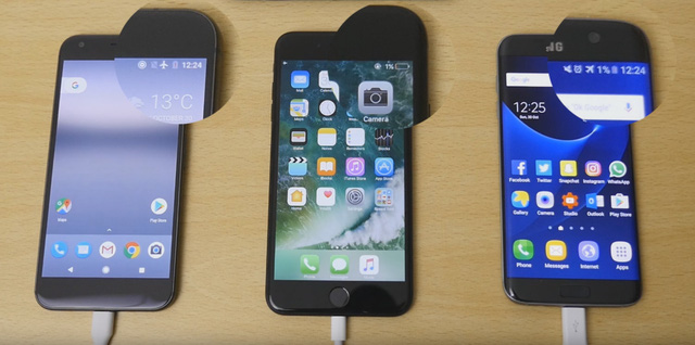 Trong một video so sánh mới, YouTuber nổi tiếng SuperSafTV đã có một cuộc đối đầu kịch liệt giữa Samsung Galaxu S7 edge, Google Pixel Xl và Apple iPhone 7 để tìm ra smartphone nào có thời gian sạc pin nhanh nhất – và kết quả có thể sẽ khiến bạn không khỏi ngạc nhiên.