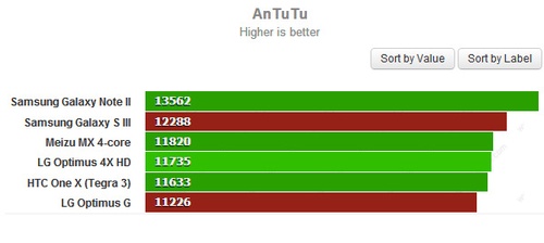 Toàn bộ cấu hình bao gồm CPU, GPU, cho tới RAM và khả năng ghi và truy xuất dữ liệu được thực hiện đánh giá với hai công cụ quen thuộc là AnTuTu và Quandrant. Cùng sở hữu chipset 4 nhân và chạy Android Jelly Bean nên kết quả từ AnTuTu cho thấy sự tương đồng giữa hai model. Phần thắng ngiêng về phía Galaxy S III nhưng sự chênh lệch giữa 2 model không quá lớn.