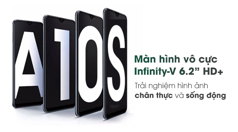 Samsung Galaxy A10s sử dụng màn hình 6.2 inches, tấm nền IPS LCD, độ phân giải HD+. Màn hình này thường được các mẫu smartphone phổ thông trang bị. Với Samsung, hãng không dùng tấm nền Super AMOLED quen thuộc để giảm chi phí sản xuất Galaxy A10s khiến người dùng lo ngại về chất lượng hiển thị. Tuy nhiên, cảm giác màn hình của Galaxy A10s ở tầm trên so với mặt bằng chung của thị trường khi màu sắc được tái tạo chính xác, độ sáng cao để hoạt động ngoài trời một cách rõ ràng. Độ phân giải HD+ có lợi thế giảm tải cho cấu hình, giúp máy có thời lượng pin dài hơi hơn dù khi duyệt web, xem video hay ở giao diện thông thường hiện tượng rỗ là điều khó tránh khỏi.