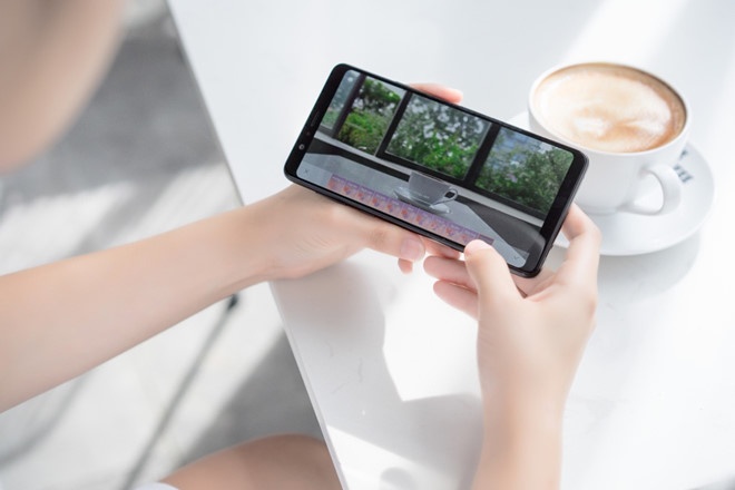 Không chỉ là công cụ làm đẹp, Galaxy A8 Star còn là trang sức sành điệu của giới trẻ. Máy được thiết kế sang trọng với kim loại và mặt kính, kích thước mỏng 7,6 mm vừa vặn trong lòng bàn tay. Màn hình tràn viền Infinity Display có kích thước đến 6,3 inch - lớn nhất hiện nay, giúp người dùng trải nghiệm thoải mái khi xem lại ảnh, video. Model chỉ có 2 màu: trắng titanium thanh lịch và đen thạch anh bóng bẩy.