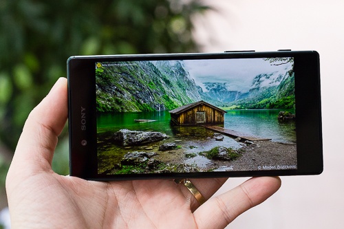 Không cần tới độ phân giải QuadHD, màn hình của Xperia Z5 vẫn tốt. Tấm nền IPS LCD cùng loạt công nghệ hình ảnh nổi tiếng của Sony như Triluminos Display (tăng dải màu), Mobile Bravia Engine (xử lý hình ảnh), X-Reality (giảm nhiễu, tặng độ chi tiết), màn hình của Z5 sống động, trong và sắc nét. Khi đặt iPhone 6 Plus hay 6s Plus bên cạnh, màn hình của Apple dù cùng kiểu tấm nền nhưng không cuốn hút như Sony.