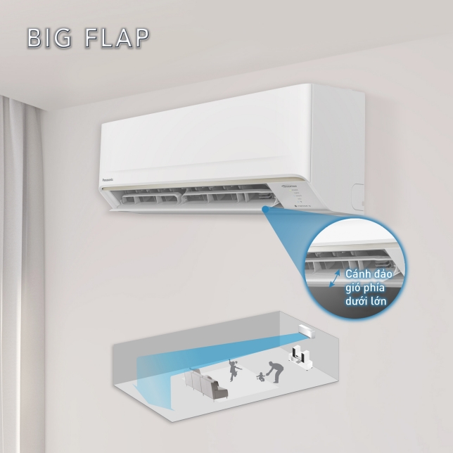 Cánh đảo gió lớn phía dưới lan tỏa khí mát và thoải mái ra khắp phòng mang lại cảm giác mát tối ưu.