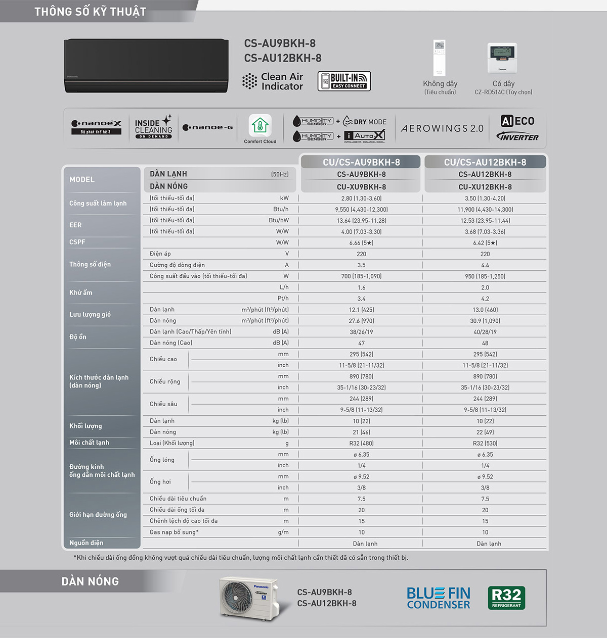Panasonic 1 chiều Inverter 1HP-9.550BTU CU/CS-AU9BKH-8