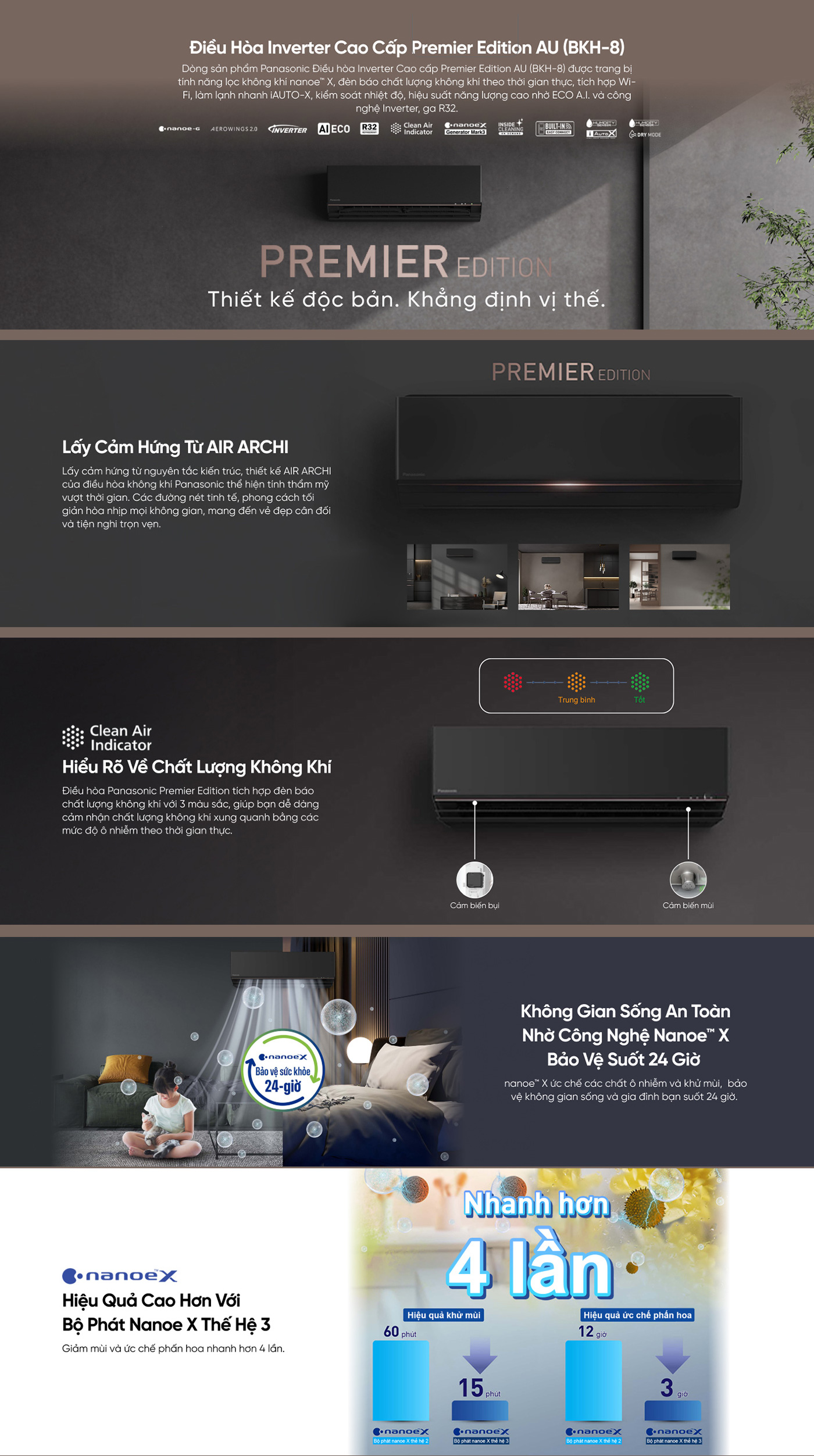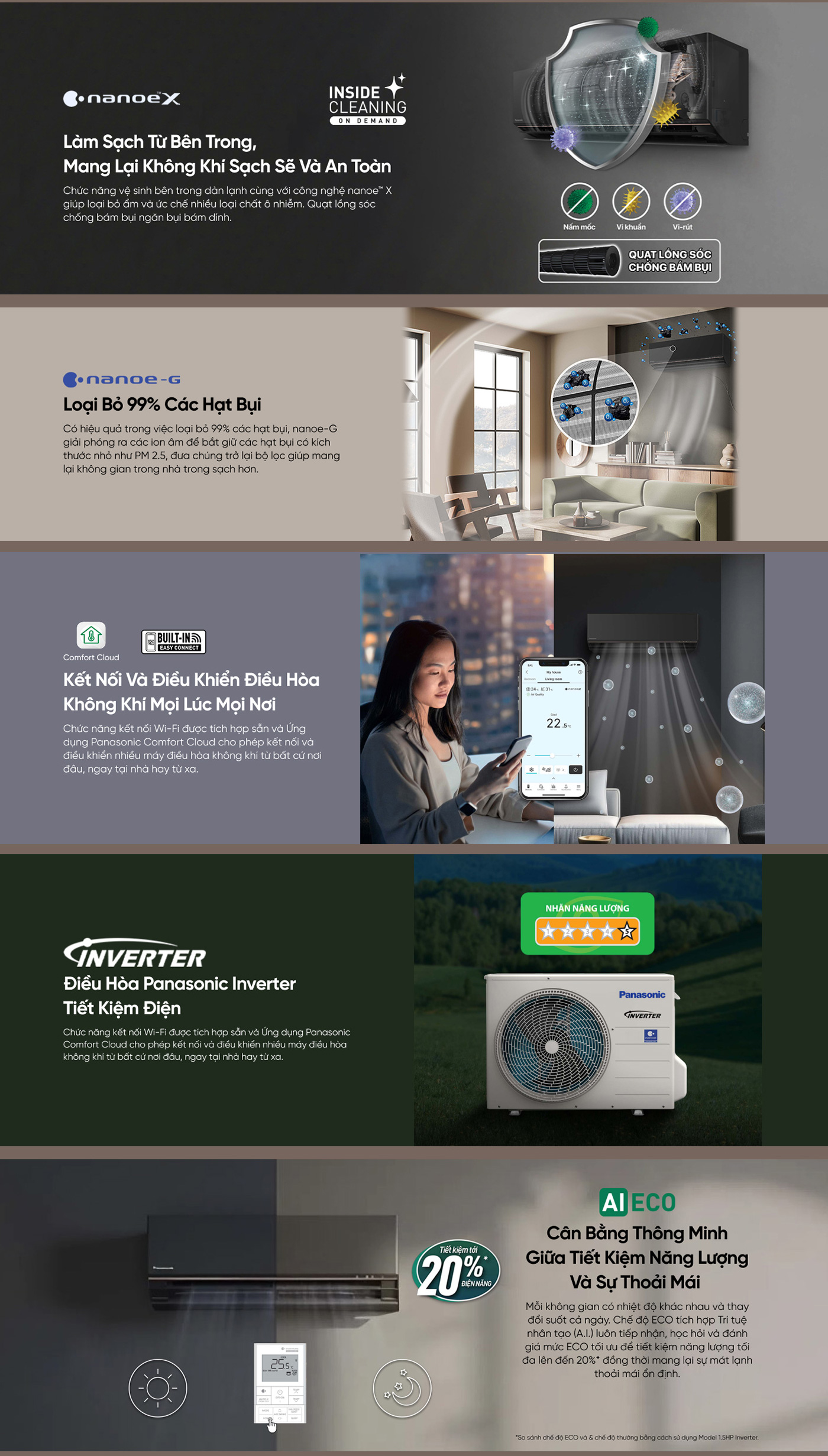 Điều hòa Panasonic 1 chiều Inverter 1.5HP-11.900BTU CU/CS-AU12BKH-8