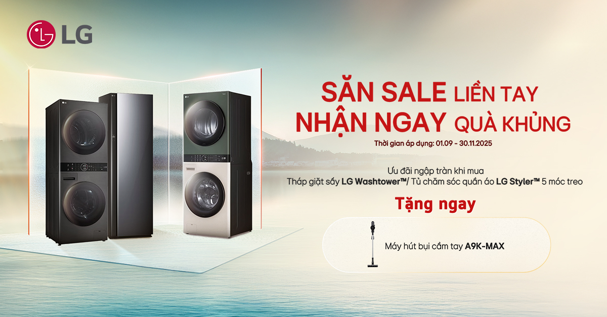 Tháp máy giặt cao cấp LG WashTower 25Kg + sấy 17Kg WT2517NHEG