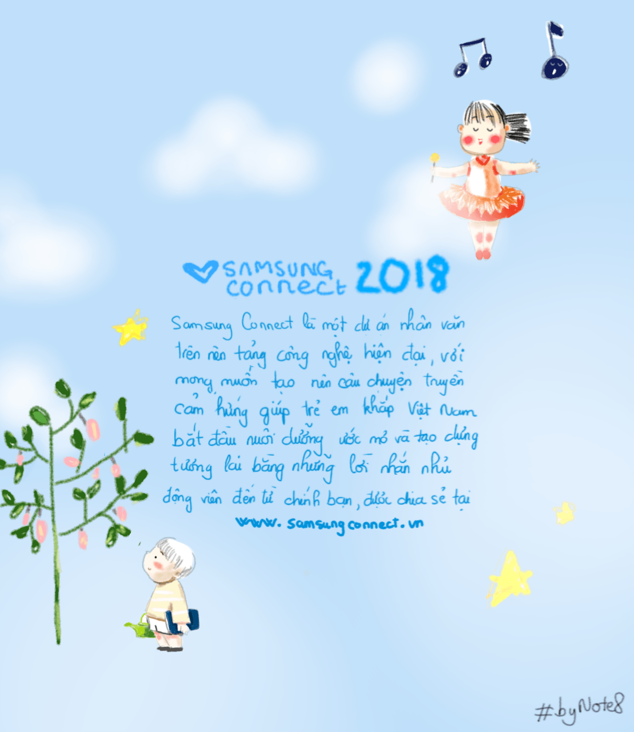 Từ ý nghĩa nhân văn của dự án Samsung Connect với những ước mơ trong trẻo của trẻ em, họa sĩ Thái Mỹ Phương (Tamypu) đã lên ý tưởng về một bộ lịch xuân 2018 thật đặc biệt.