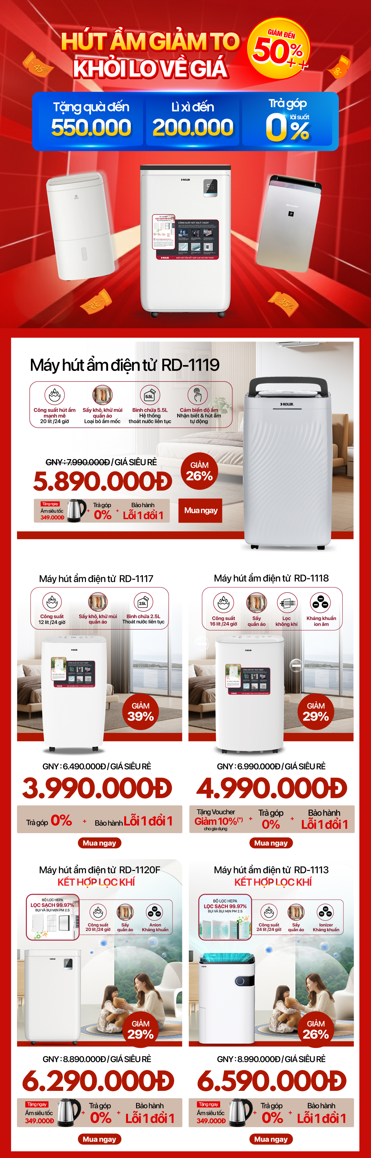 Máy hút ẩm điện tử 30 lít Roler RD-1116
