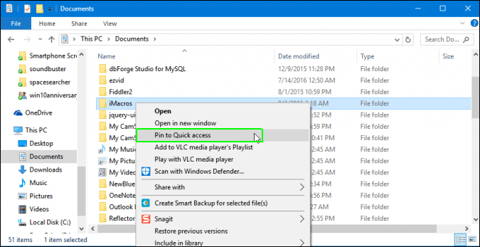 3. Kích chuột phải vào nó và chọn Pin to Quick Access