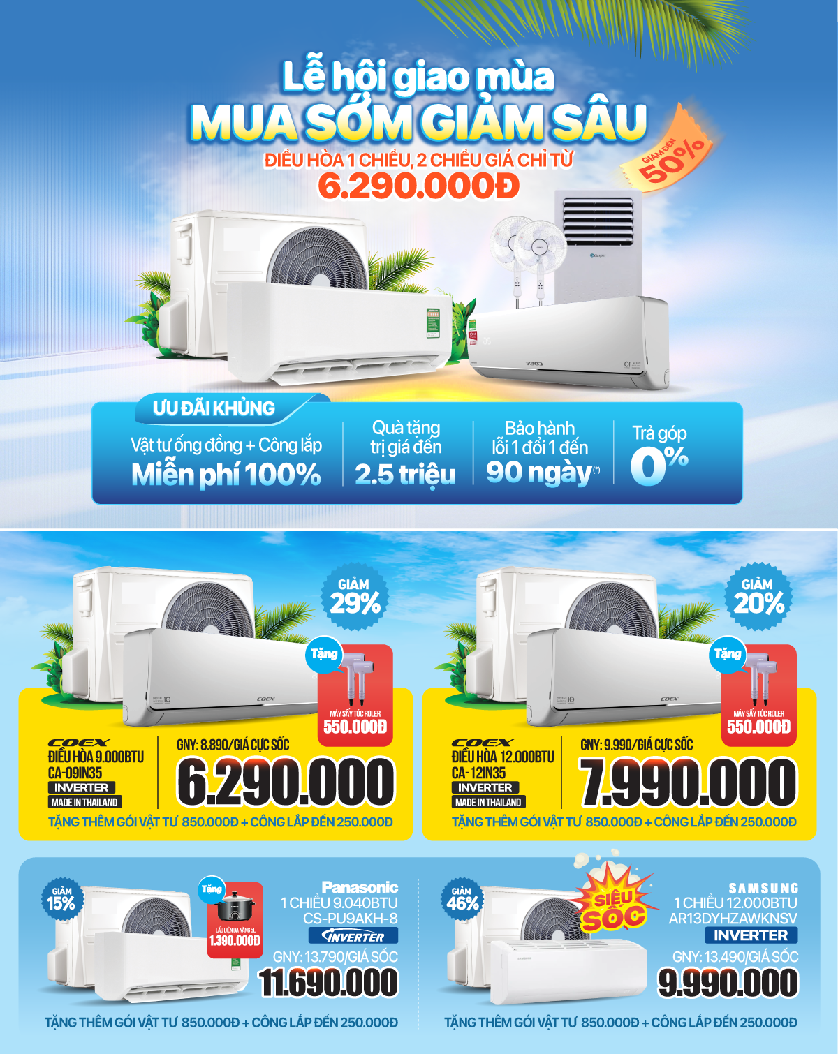 • Điều hòa dưới 7 triệu