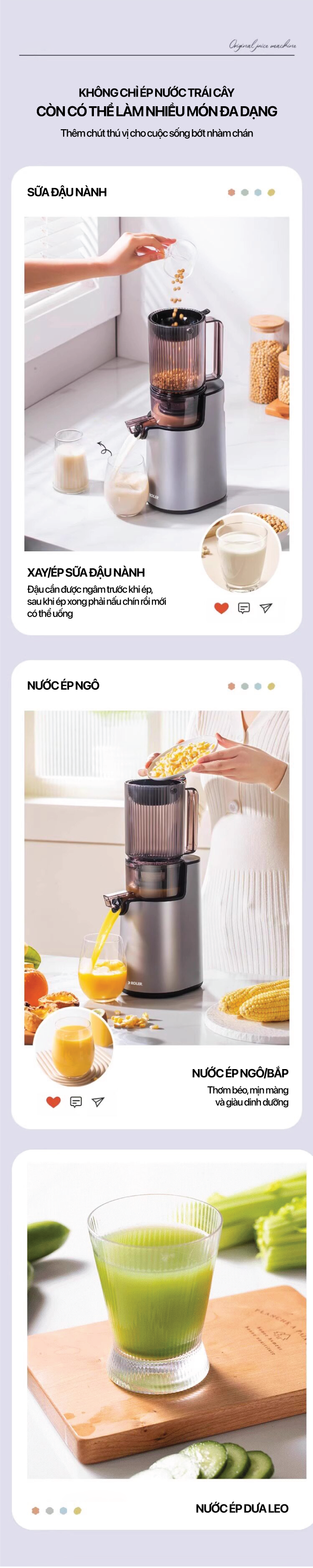 • Tỷ lệ ép nước nguyên chất lên đến 97%