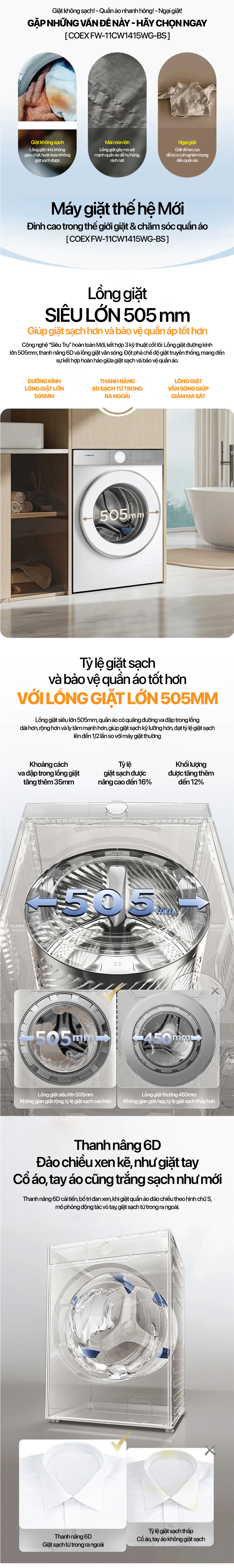 Tóm lại, máy giặt lồng ngang Coex FW-11CW1415WG-BS là lựa chọn phù hợp cho những hộ gia đình trên 7 thành viên, với công nghệ giặt hơi nước Steam, công nghệ kháng khuẩn Ozone, chương trình giặt thông minh M-Smart... Đây chắc chắn sẽ là một người bạn đồng hành không thể thiếu cho các gia đình.