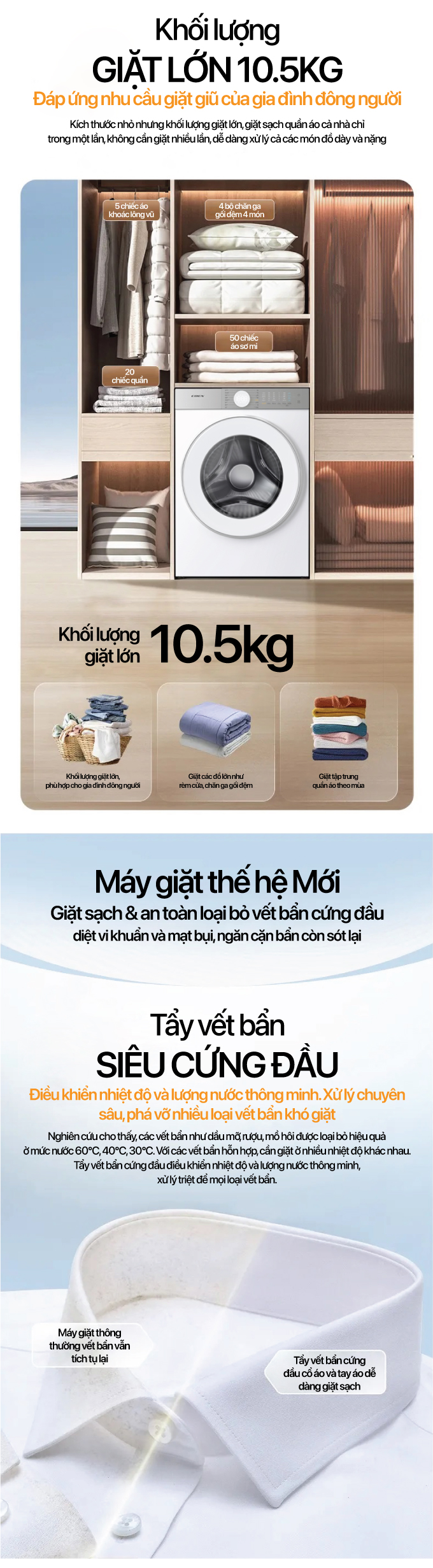 - Tự điều chỉnh thích ứng tốc độ giặt theo tải trọng quần áo để đạt được hiệu quả giặt tối đa