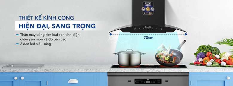hút mùi luôn sạch sẽ, loại bỏ dầu chỉ bằng một lần chạm.