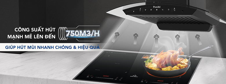và ít gây ồn với độ bền cao. Công suất hút lên tới 750m3/h giúp loại bỏ