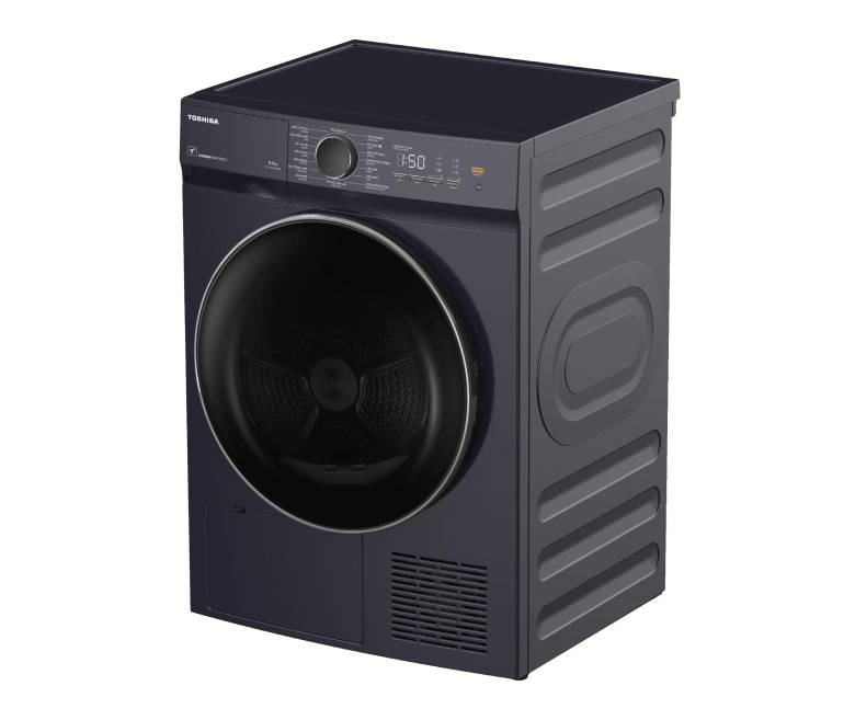 Máy sấy bơm nhiệt Toshiba Inverter 8 kg TD-T21B90HWV(MG) sở hữu thiết kế Japandi tối giản, gam màu xám trung tính, dễ dàng hòa hợp với mọi phong cách nội thất. Cửa 2 lớp kết hợp bảng điều khiển cảm ứng siêu nhạy và màn hình lớn hiển thị rõ ràng, giúp thao tác dễ dàng, tối ưu trải nghiệm người dùng. Kích thước 85 x 59.5 x 60 cm (Cao x Rộng x Sâu) và trọng lượng 45 kg gọn nhẹ, phù hợp cho không gian sống hiện đại. Đặc biệt, máy có thể đặt cạnh hoặc trên máy giặt Toshiba (với bộ kết nối), tiết kiệm không gian hiệu quả.