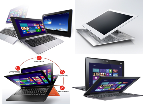Khảo sát trên thị trường hiện nay, hầu hết các hãng sản xuất laptop đều có vài mẫu laptop màn hình cảm ứng, nhưng nhiều nhất có lẽ là Asus. Các mẫu laptop này đều được cài đặt sẵn hệ điều hành Windows 8.