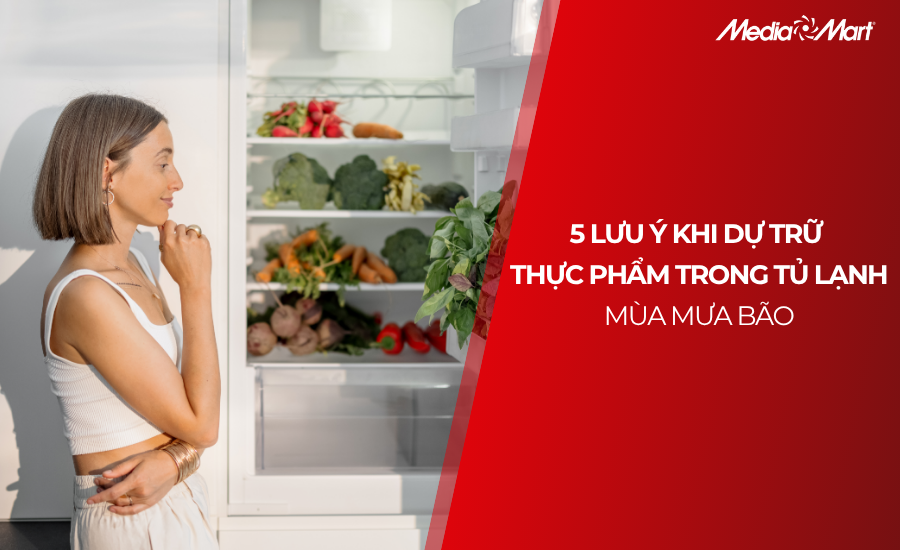Trong những ngày mưa vào, việc giữ an toàn thực phẩm trở thành vấn đề đáng quan tâm hàng đầu của nhiều gia đình. Tình trạng ngập lụt có thể làm ô nhiễm nguồn nước và thực phẩm, tạo điều kiện thuận lợi cho vi khuẩn phát triển từ đó có thể gây ngộ độc. Đây là lúc chúng ta cần đặc biệt cẩn trọng trong dự trữ và bảo quản thực phẩm. Trong bài viết này, MediaMart sẽ chia sẻ 5 lưu ý quan trọng khi dự trữ thực phẩm trong tủ lạnh, đặc biệt vào mùa mưa bão kéo dài.