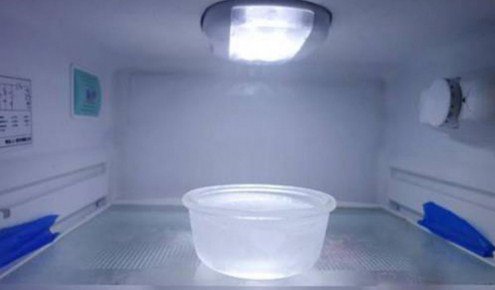 Vào ban đêm, trước khi đi ngủ, bạn hãy đặt một bát nước vào ngăn đá tủ lạnh và đợi qua đêm.