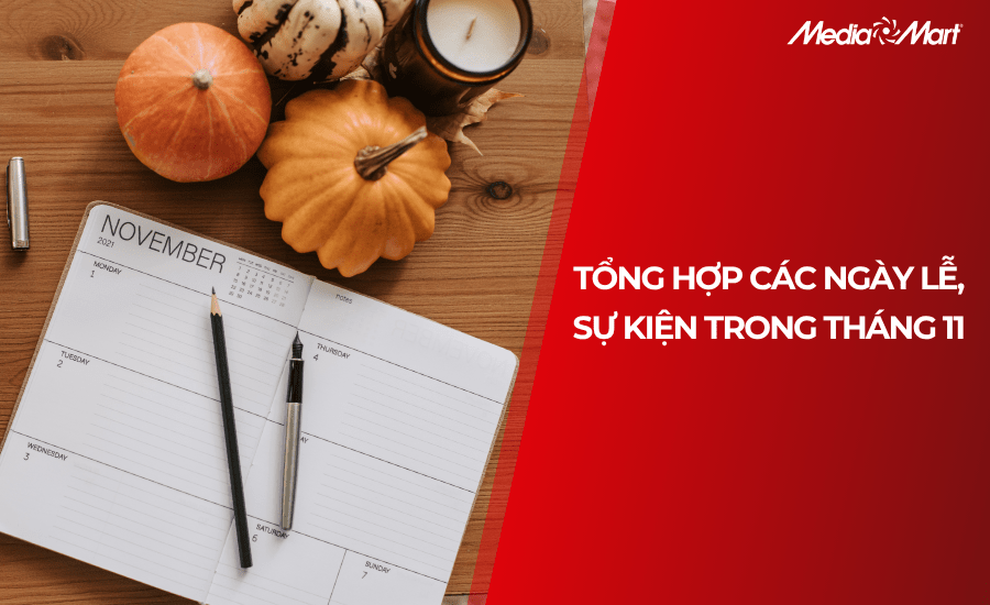 Tháng 11 mở ra một chương mới đầy ý nghĩa, là sự giao thoa hoàn hảo giữa mùa thu lãng mạn và sự khởi đầu của mùa lễ hội cuối năm. Bạn đang thắc mắc tháng 11 có ngày lễ gì để lên kế hoạch nghỉ ngơi hay tổ chức sự kiện. Dưới đây là bài viết tổng hợp các ngày lễ, sự kiện đáng chú ý trong tháng 11. Hãy cùng MediaMart theo dõi nhé!