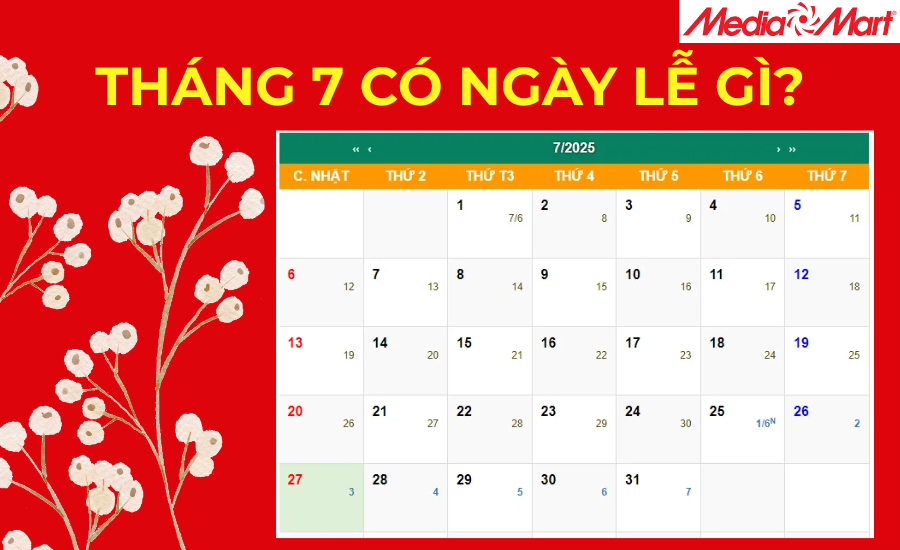 Trên đây là bài viết tháng 7 có ngày lễ gì, các ngày lễ, sự kiện trong tháng 7 mà MediaMart tổng hợp lại được. Hy vọng thông tin trên sẽ giúp bạn không bỏ lỡ ngày quan trọng nào trong tháng và lên kế hoạch nghỉ ngơi, sắp xếp kế hoạch công việc phù hợp.
