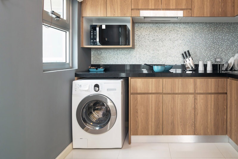 Để máy giặt ở trong bếp cũng không phải là vị trí tốt.