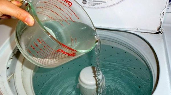 - Xả nước trong vào lồng giặt. Cho nước diệt khuẩn hoặc có thể thay thế bằng 2-3 bát giấm trắng hoặc chanh cắt lát(3quả), chất tẩy(javen, clo) hoặc bột baking soda.