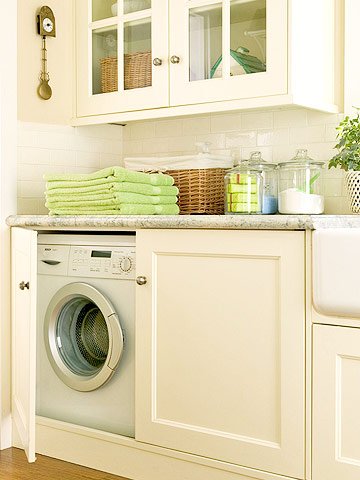 Khi không thể có một phòng giặt riêng, bạn vẫn có thể có một không gian đặt máy giặt tiện ích và hợp lý.