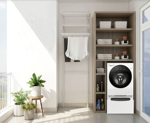 Để tiết kiệm diện tích không gian sống, bạn có thể bố trí góc giặt tại ban công, phòng tắm của gia đình.