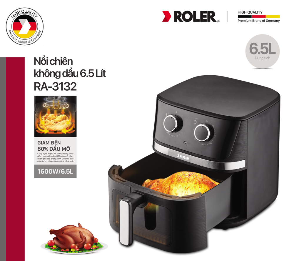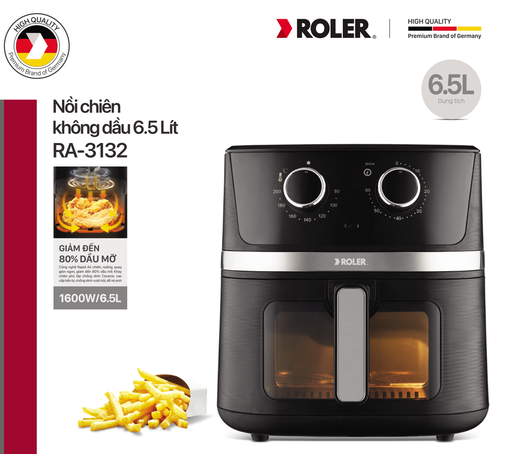 Nếu bạn muốn một chiếc nồi chiên không dầu đa năng – bền bỉ – dung tích lớn – giá hợp lý thì ROLER RA-3132 6.5L là sản phẩm không thể bỏ qua.