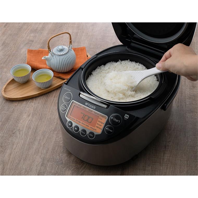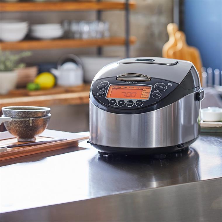 Nồi cơm điện tử cao tần Tiger JKT-D18V với thiết kế bảng điều khiển màn hình LCD điều chỉnh nút nhấn Menu thông minh “lùi và tới” mà không cần nhấn theo thứ tự tuần hoàn, hiện đại, đơn giản và dễ dàng sử dụng với 12 chức năng : 11 chức năng nấu cơm (Nấu gạo trắng, Nấu cơm cực ngon, Nấu cơm nhanh, Nấu tiết kiệm điện, Nấu gạo trộn ngũ cốc, Nấu gạo lức, Nấu gạo lức nảy mầm, Nấu cháo, Nấu gạo nếp – Nấu cơm trộn, Nấu gạo hạt dài), Nấu cơm siêu tốc (Express-Limited Cups), hầm và giữ ấm đáp ứng những bữa cơm đa dạng cho gia đình bạn. Không chỉ vậy, chế độ giữ ấm cơm tự động lên đến 24 giờ mà không bị khô rất tiện lợi và tiết kiệm chi phí cho người nội trợ không có nhiều thời gian nấu cơm.