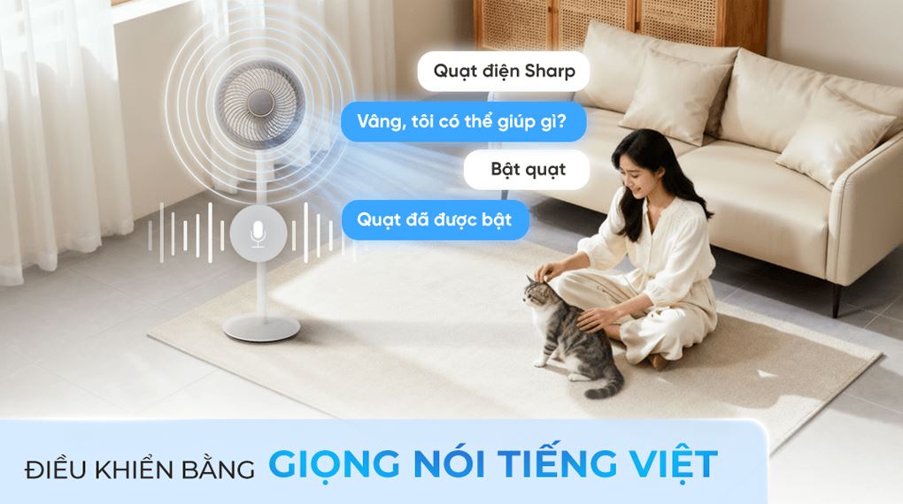 Quạt có thể nhận lệnh bật/tắt, tăng giảm cấp gió, hẹn giờ và bật/tắt xoay trái phải bằng giọng nói. Để kích hoạt tính năng này, người dùng nhấn giữ nút nguồn trên thân máy khoảng 5 giây.
