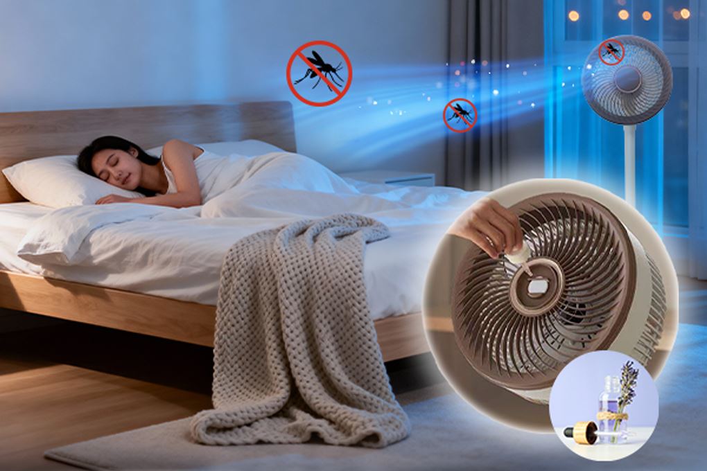 Bên cạnh đó, sản phẩm có ngăn chứa tinh dầu để tăng cảm giác dễ chịu cho không gian sử dụng. Quạt còn hỗ trợ xoay trái phải bằng điều khiển hoặc lệnh giọng nói, giúp luồng gió phân bổ linh hoạt hơn trong phòng.