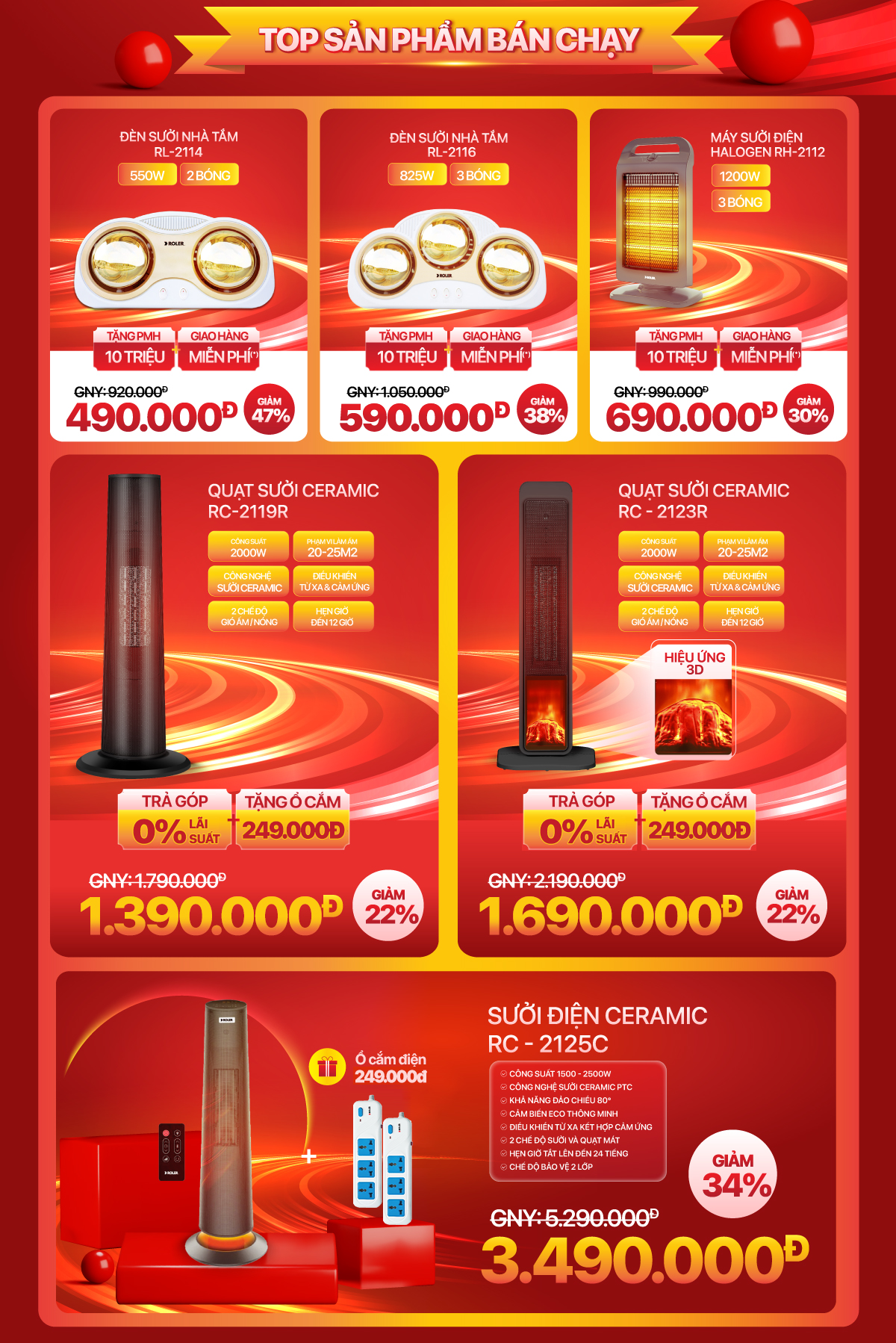 Máy sưởi đối lưu không khí điện tử Roler RC-2116A (Có điều khiển từ xa)
